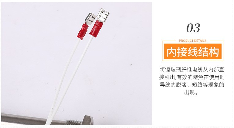 如須在極高的溫度下使用加熱管,可選用陶瓷封口,并用高溫陶瓷膠密封,最高耐熱溫度可以達(dá)到800°C。引線高溫玻纖線可選。